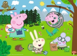 Puzzel Bosavontuur Peppa Pig is geïnspireerd door de populaire animatieserie voor kinderen Peppa Pig. Deze grote puzzel van stevig karton is speciaal ontworpen voor jonge kinderen. Levendige kleuren en mooie patronen van dieren motiveren kinderen om te spelen.