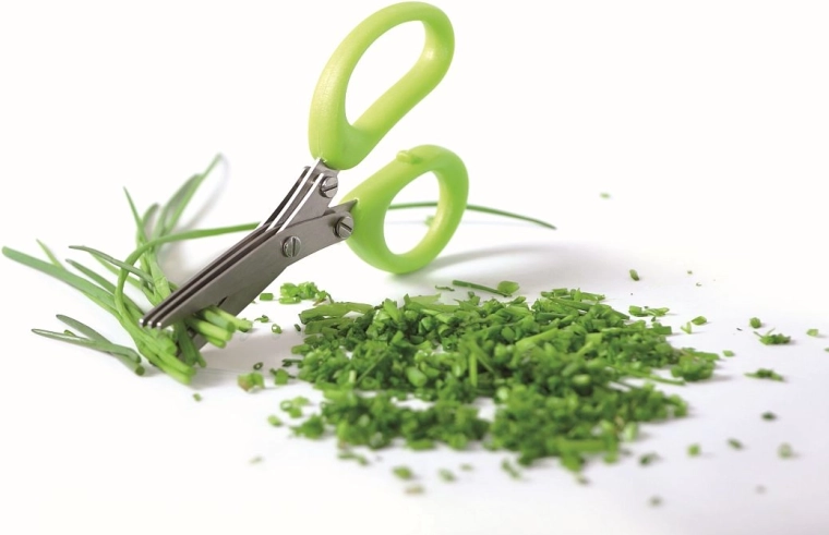 Maak het bereiden van maaltijden makkelijker met de slimme kruidenschaar met drie parallelle snijvlakken. De meerlagige bladen verkorten de snijtijd en zorgen voor gelijkmatige stukjes bieslook, peterselie of basilicum zonder onnodig pletten en smaakverlies.
