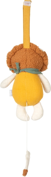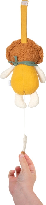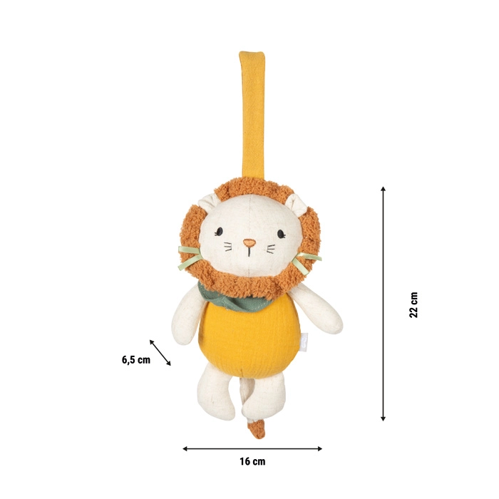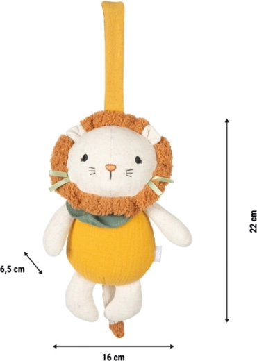 Het stoffen leeuwtje combineert zachte materialen, een speels design en praktisch gebruiksgemak voor de dagelijkse routine van je baby. Trek aan het koordje en een aangenaam slaapliedje klinkt, wat helpt om sneller in slaap te vallen en rustiger te slapen. Dankzij de compacte afmetingen past het in de kinderwagen en naast het ledikant en is het altijd bij de hand.