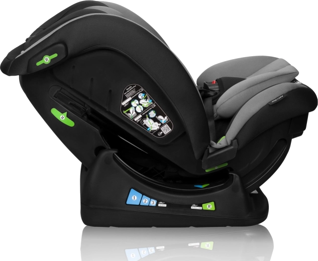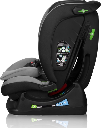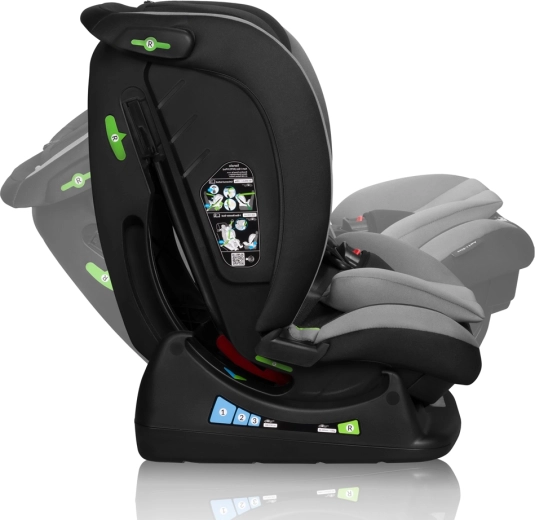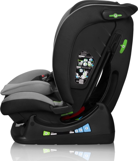 De installatie is eenvoudig en compatibel met de meeste auto’s dankzij de driepuntsveiligheidsgordels. Het stoeltje groeit met het kind mee – het biedt een 13-standenshoofdsteun, geïntegreerde hoogteverstelling van de gordels en zachte reducerende en lendensteunkussens voor de kleintjes. Voor comfortabel reizen is er een ergonomische hoek in RWF en 3 hellingsstanden met de rijrichting mee.
