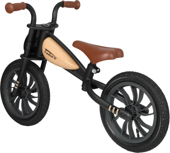 De stijlvolle loopfiets Qplay Feduro met een metalen frame geïnspireerd op motorfietsen helpt kinderen hun balans, coördinatie en zelfvertrouwen te ontwikkelen. Voorzien van 12" luchtbanden voor een stabiele rit, een verstelbaar zacht zadel en ergonomische antislipgrepen. Geschikt voor kinderen van 3–6 jaar tot 30 kg.
