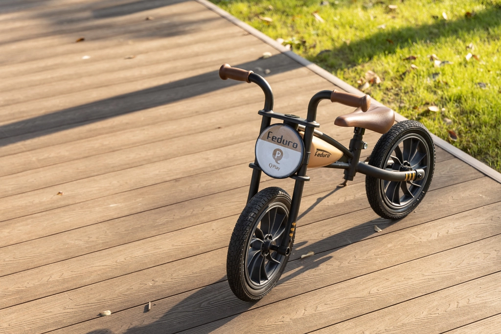 De Qplay Feduro loopfiets combineert de elegante uitstraling van een motorfiets met praktische kenmerken voor dagelijks gebruik. Het metalen frame met de silhouet van een brandstoftank zorgt voor een sportief karakter en duurzaamheid, terwijl de lichte constructie en kwaliteitslagers zorgen voor een soepele loop zonder haperen.