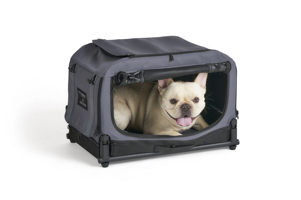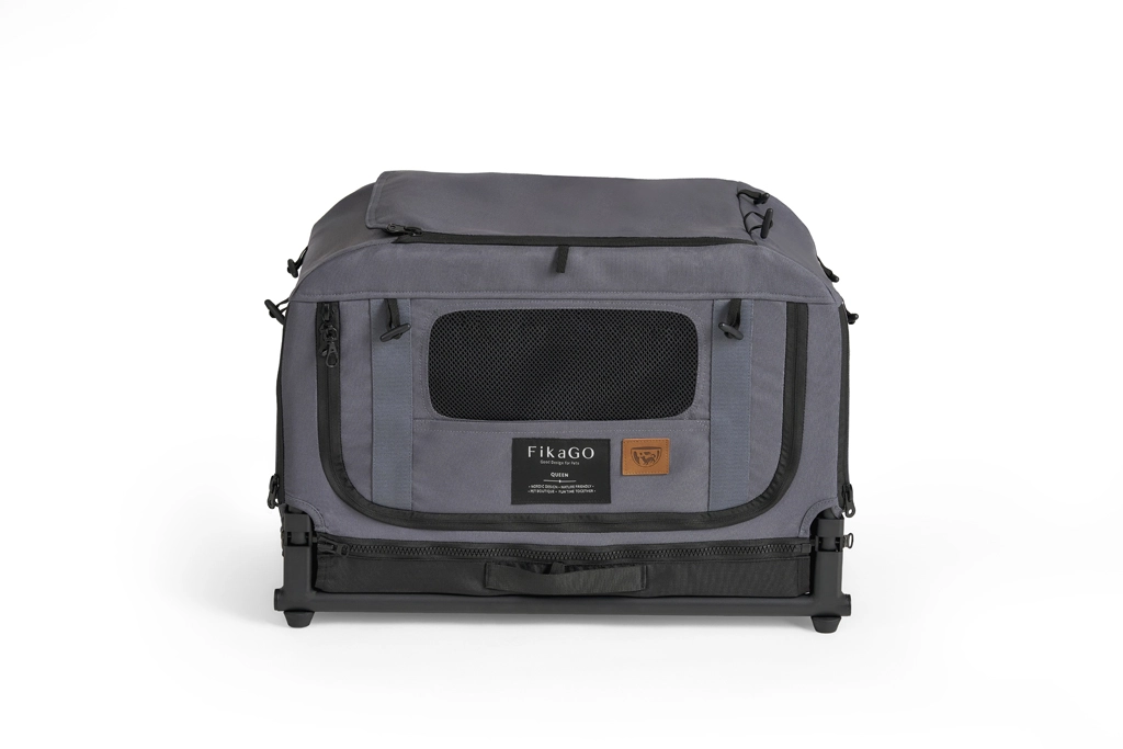 De FIKAGO Queen XS is een softshell, maar uitzonderlijk stabiele transportbox met een aluminium frame dat zijn vorm behoudt, zelfs bij hogere belasting. Ze biedt de hond een veilige, rustige basis en maakt het voor het baasje makkelijk tijdens autoritten, op shows en bij gebruik in huis. Gaaspanelen zorgen voor ideale luchtstroom en visueel contact met de omgeving.