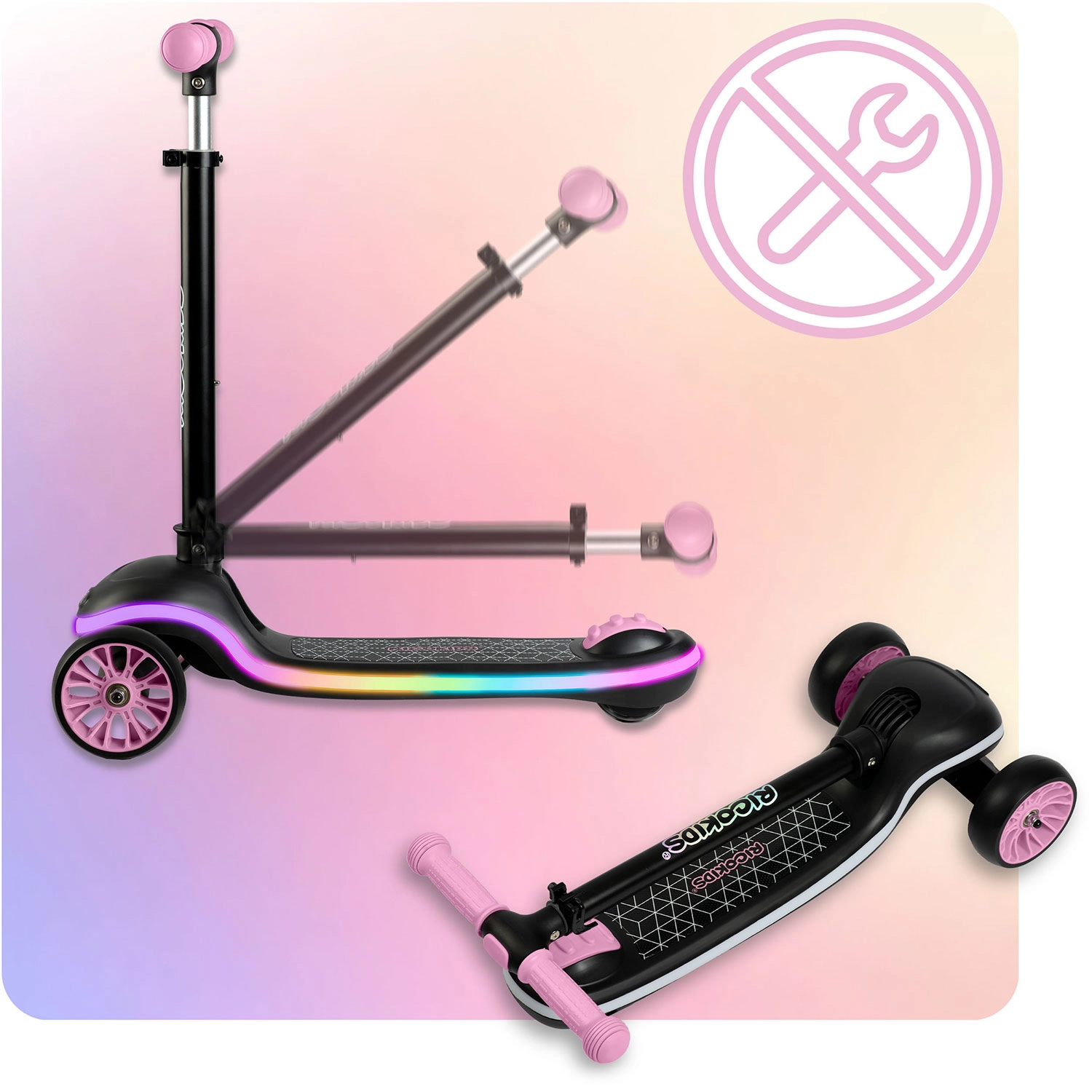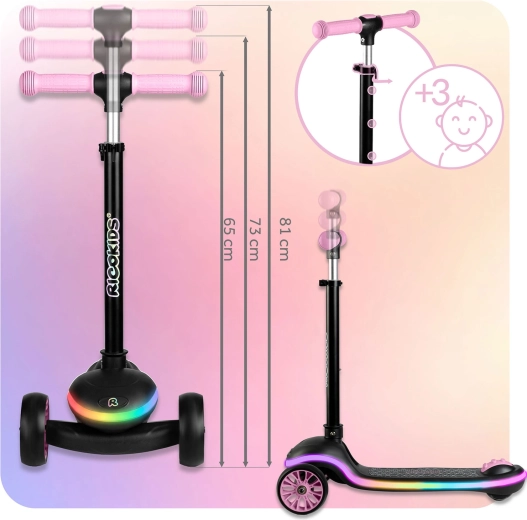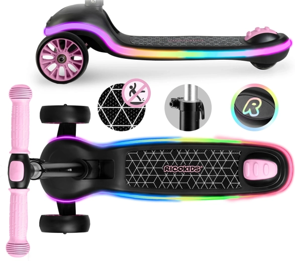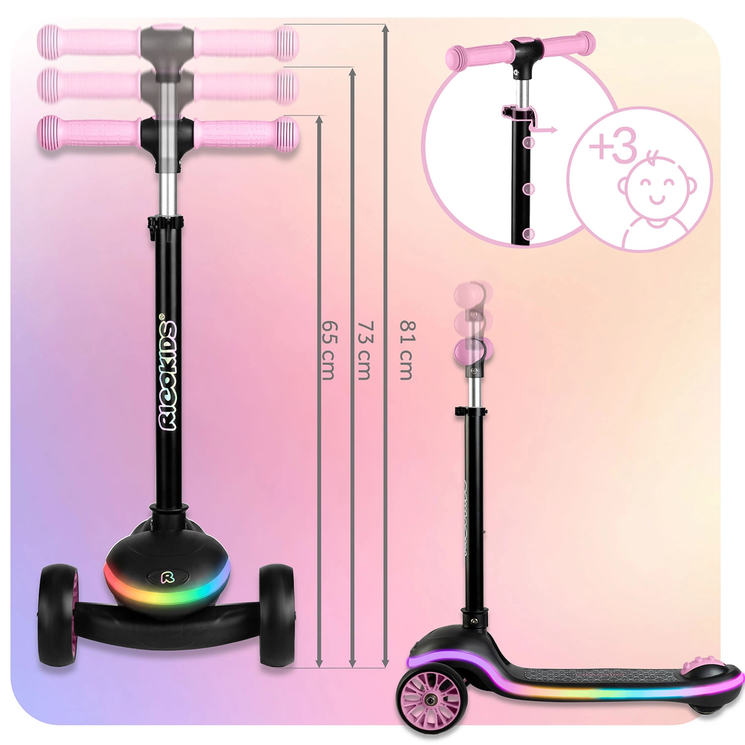 RICOKIDS Leddi is een premium driewielige kinderstep, ontworpen voor een veilige en comfortabele rit vanaf de eerste afzet. Dankzij het stabiele driewielchassis, het antislipopervlak van de voetplaat en ergonomische handgrepen genieten kinderen elke dag van het rijden. Geïntegreerde LED-strips in de voetplaat bieden tot 20 lichtmodi met uni- en meerkleurige effecten – uitstekend zichtbaar, ook in het donker.