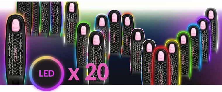 Een spectaculaire show die ook de zichtbaarheid vergroot. Kies uit 20 lichteffecten – egaal gekleurd of dynamische multicolor-overgangen – en maak van elke rit een mobiele lichtshow.