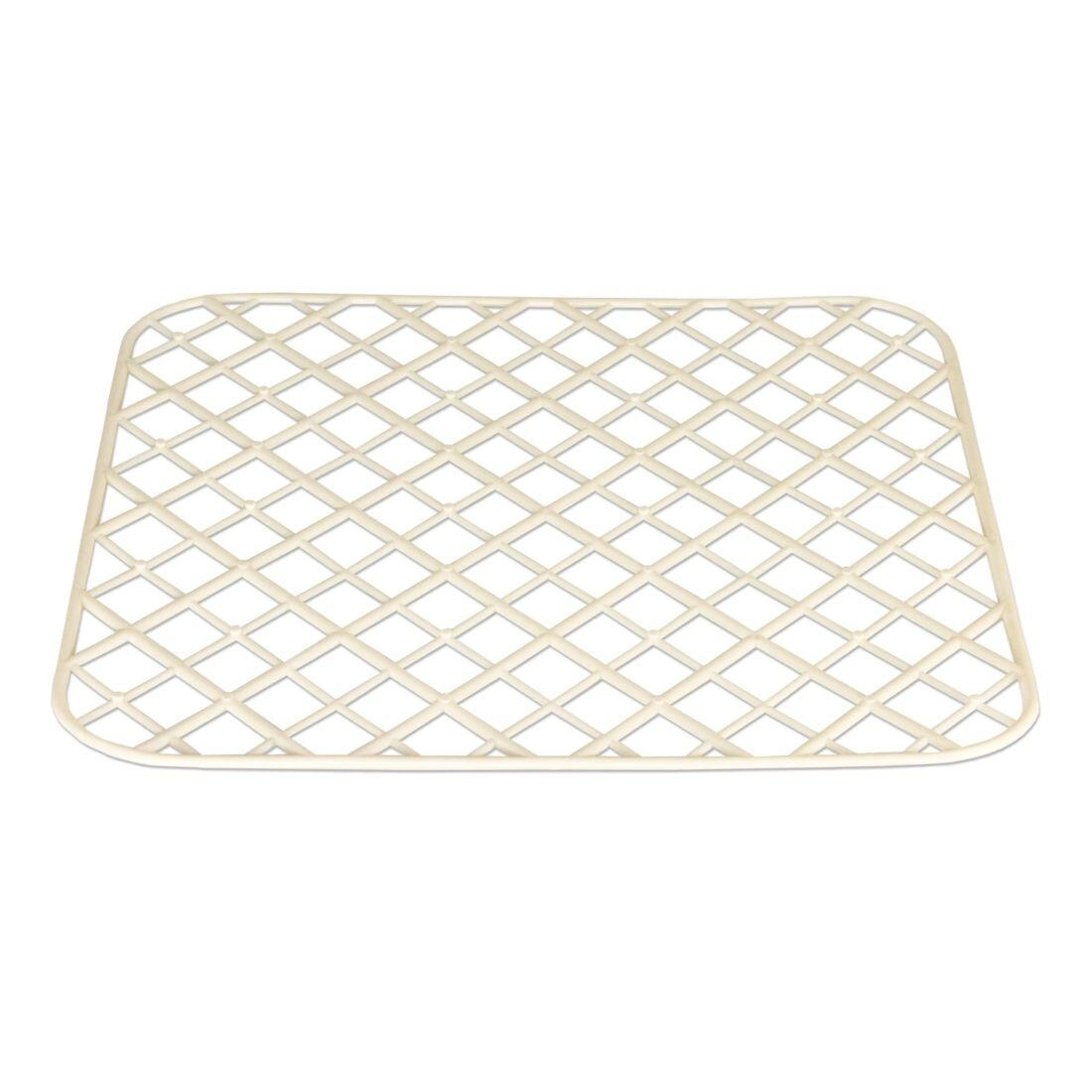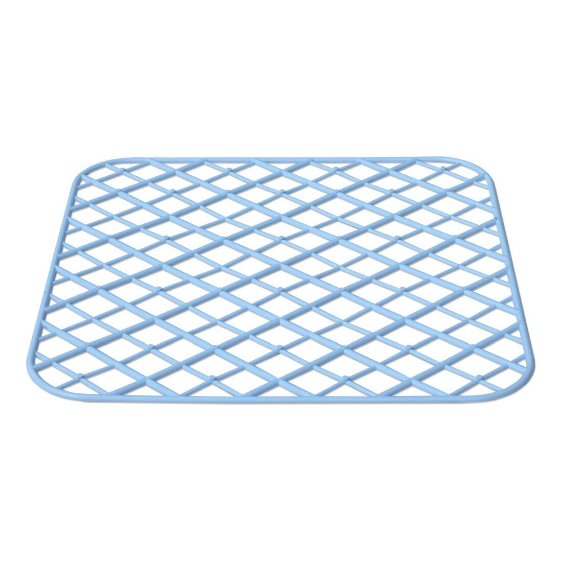Deze universele gootsteeninzet met roosterstructuur verbetert de hygiëne en het comfort tijdens het afwassen. Het open raster zorgt voor een vrije doorstroming van water en lucht, waardoor afdruipen wordt versneld en de ophoping van vuil wordt beperkt. De flexibele uitvoering beschermt het gootsteenoppervlak tegen krassen en dempt schokken van breekbaar servies.