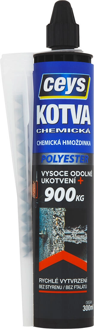 CEYS Chemisch anker polyester 300 ml is een snel uithardende tweecomponentenmortel voor extreem sterke en veilige verankering in holle en massieve materialen. Door het ontbreken van uitzetting is het geschikt voor montages waar het risico op scheuren in de ondergrond bestaat en maakt het verankering dicht bij randen mogelijk.