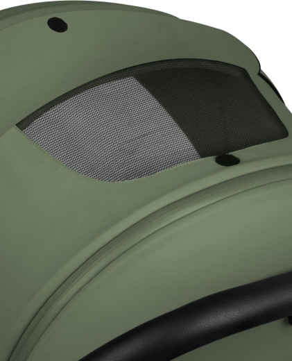 Waterdichte XXL-kap met UV50+ en 3D panoramische ventilatie in de kap en op de reiswieg houden een ideaal klimaat en beschermen je kind tegen zon en regen.
