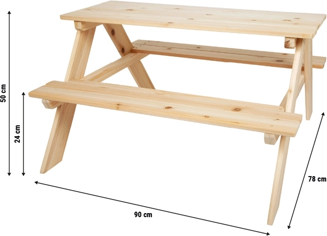 Universele kinderpicknicktafel van massief hout met geïntegreerde bankjes biedt stabiliteit, veiligheid en een natuurlijke uitstraling voor buiten en binnen. Dankzij de robuuste constructie, afgeronde randen en comfortabele zithoogte is hij ideaal om te eten, knutselen en spelen. Het onbehandelde hout is eenvoudig af te werken met verf of olie in uw eigen stijl.