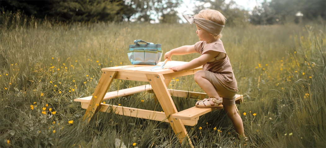 Geef kinderen een eigen plek om te spelen, knutselen en voor de eerste picknicks. De kinderpicknicktafel small foot van duurzaam massief hout valt op door zijn natuurlijke uitstraling, de robuuste A-constructie en geïntegreerde bankjes aan beide zijden. Afgeronde randen en een comfortabele zithoogte ondersteunen veilig en ergonomisch zitten.
