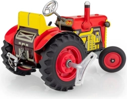 Klassiek blikken speelgoed voor kleine en grote fans van landbouwtechniek: Zetor-tractor met afneembare aanhangwagen met opwindsleutel met veermechanisme. Biedt 3 snelheden (vooruit, neutraal, achteruit), functionele besturing met stuur en handrem. Nauwkeurige Tsjechische vakmanschap, certificaat Veilige Speelgoed en een duurzame constructie van bedrukte plaat aangevuld met kunststof wielen.