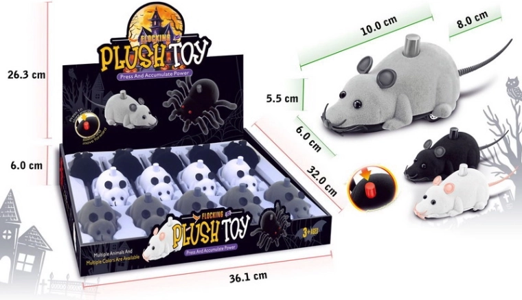 Deze leuke rijdende muis van 10 cm bezorgt plezier aan kinderen en dierenliefhebbers. Eenvoudige bediening met een knop op de rug, compacte afmetingen 10 × 6 × 8 cm en drie stijlvolle kleuren: zwart, grijs en wit.