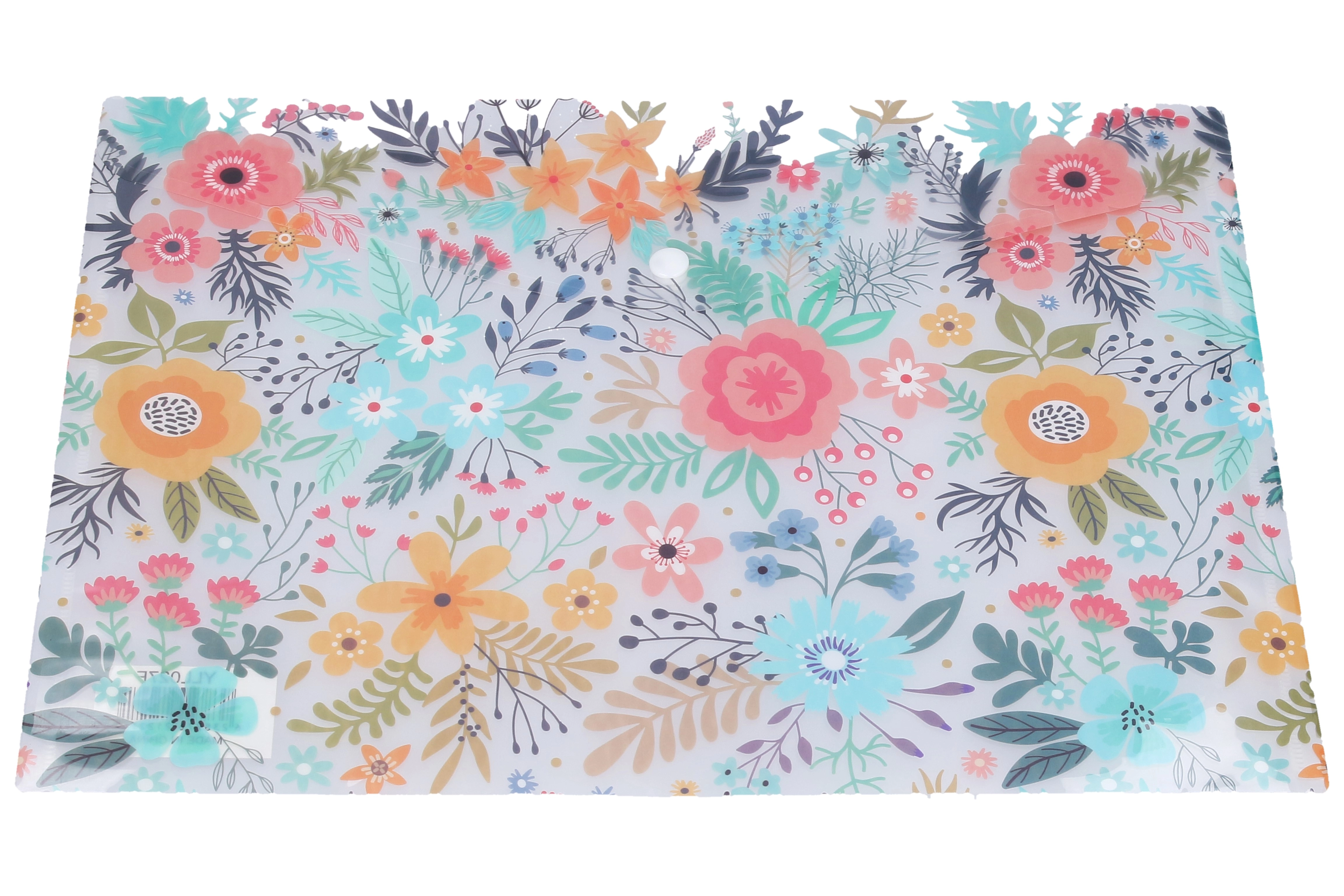 De inhoud blijft op zijn plek dankzij de stevige drukknoop. Ideaal voor documenten onderweg en in je tas.