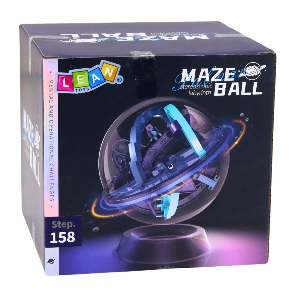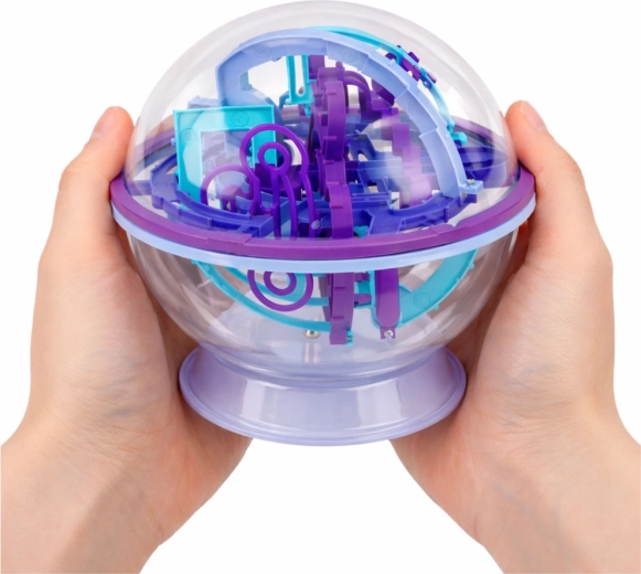 In de transparante bol schuilt een driedimensionaal doolhof vol bruggetjes, bochten, hellingen en obstakels. Jouw taak is om door handig draaien van de bol het metalen balletje over de juiste route te leiden. De afzonderlijke secties zijn gemarkeerd met cijfers en letters, zodat je na een fout makkelijk naar een specifiek punt terug kunt keren zonder helemaal opnieuw te hoeven beginnen.
