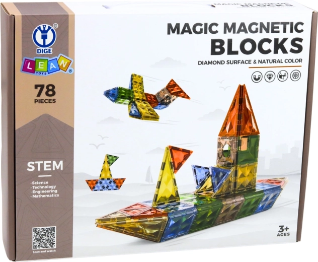 Deze uitgebreide set van 78 onderdelen biedt eindeloze mogelijkheden voor het bouwen van ruimtelijke vormen en platte patronen. Eenvoudig koppelen met magneten geeft kinderen vertrouwen tijdens het experimenteren en het bouwen van fantasierijke modellen. De gladde randen en stevige afwerking zorgen voor veilig spelen zonder scherpe delen.