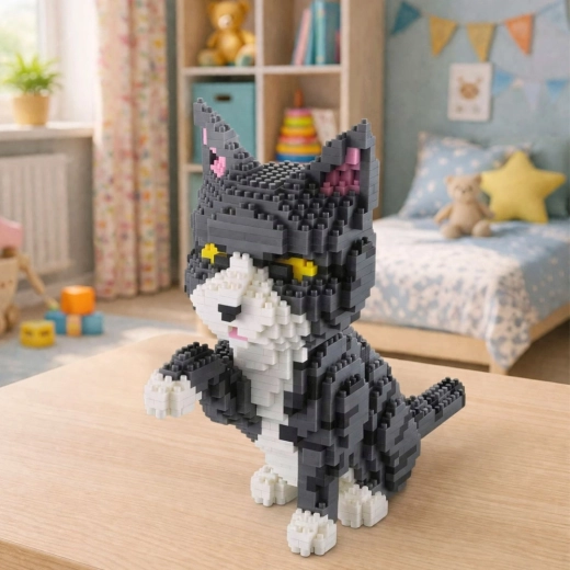 Creatieve 3D bouwset grijze kat – 1258 stukjes