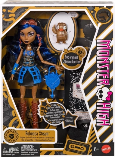 De geliefde heldin van MONSTER HIGH keert terug in de Creeproduction-heruitgave, die de oorspronkelijke eerste generatie eert. Robecca valt op door haar bronzen huidskleur, opvallende make-up en blauw‑zwarte haren. Haar outfit met tandwielmotieven, een metalen getinte rok, hoge “raket”-laarzen en een koperen bril is de essentie van steampunkstijl.