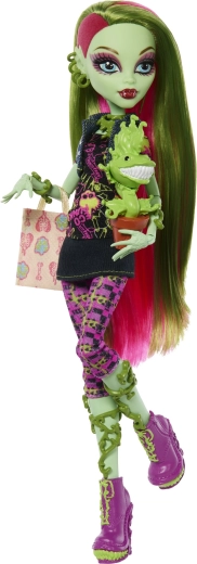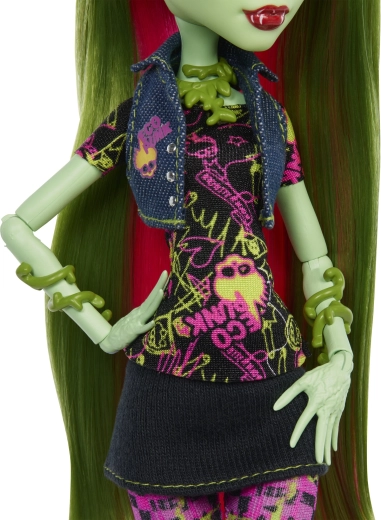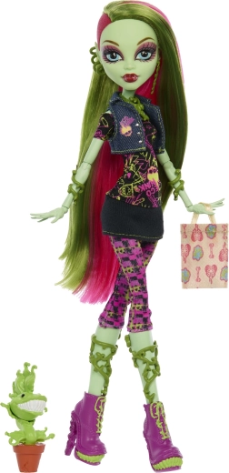 Venus McFlytrap schittert met uitgesproken botanische patronen, roze-groen haar en gedetailleerde sieraden. De flexibele constructie met 11 articulatiepunten maakt realistische poses en creatief verhalen vertellen uit de wereld van MONSTER HIGH mogelijk. In de set vind je ook haar trouwe huisdiertje Chewlian, wat extra verzamelwaarde toevoegt.