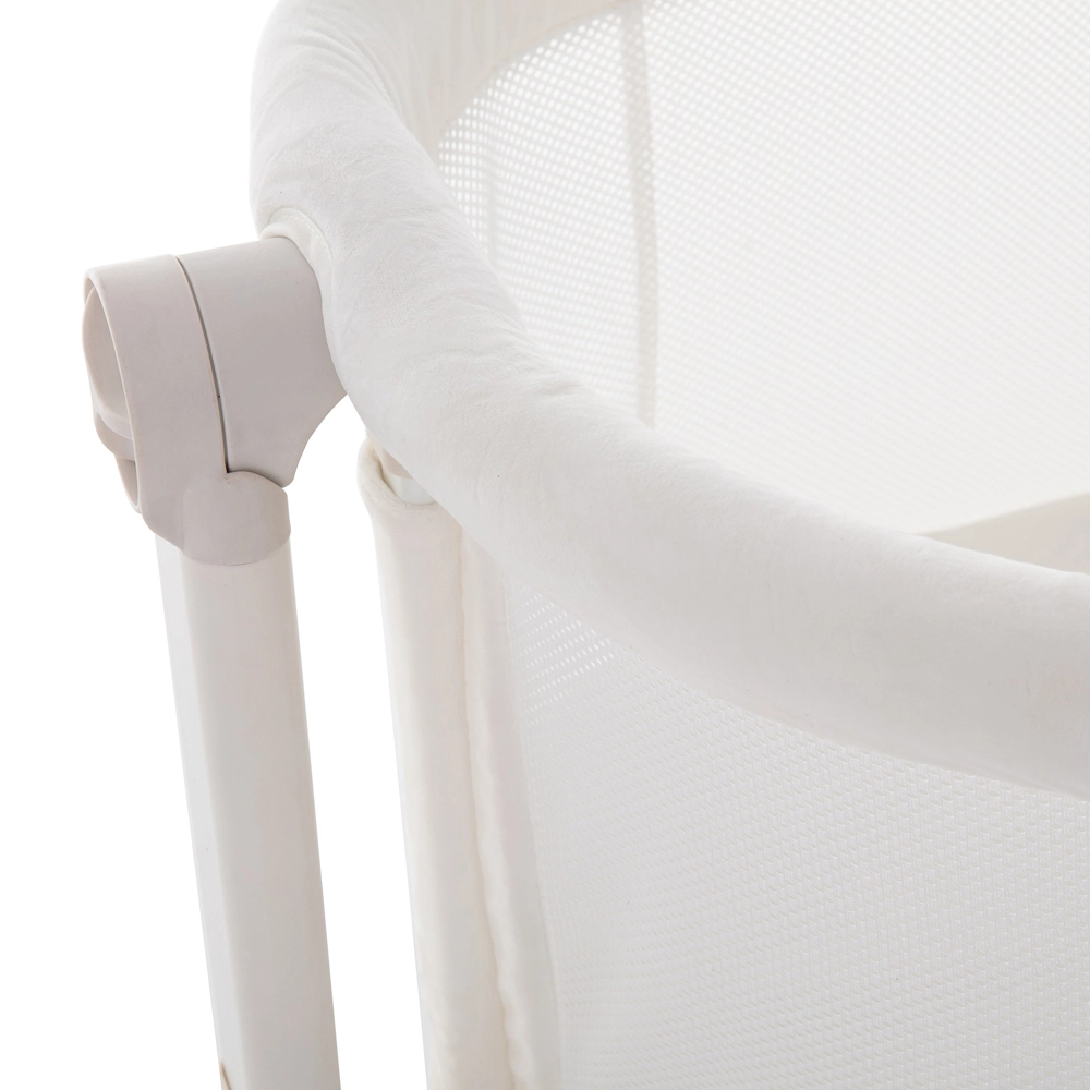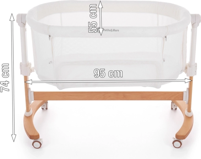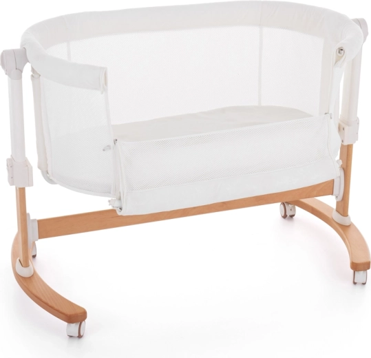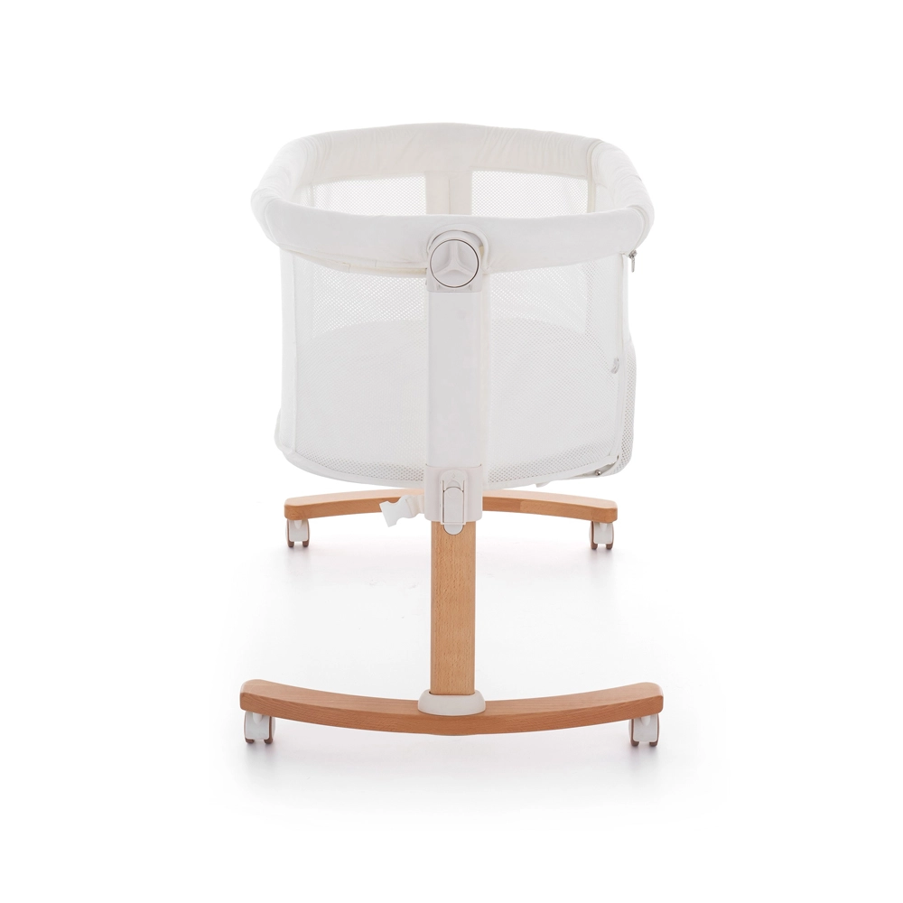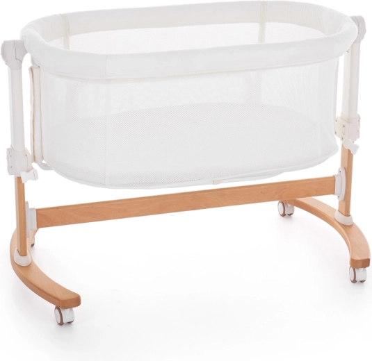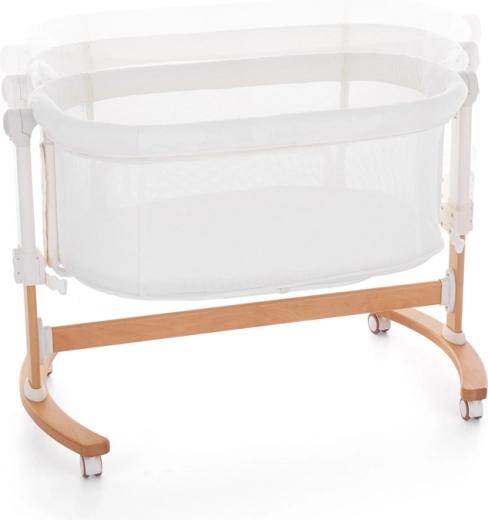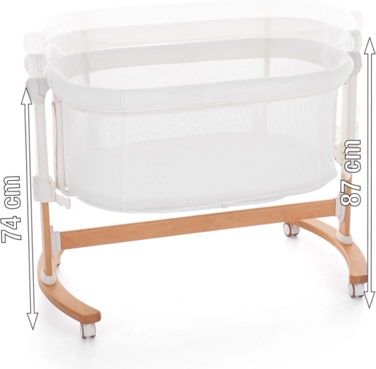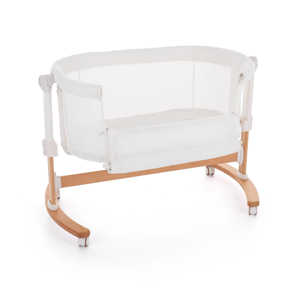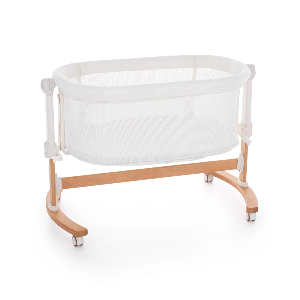 De afneembare zijwand en 5 hoogte-instellingen maken het mogelijk de wieg gelijk te zetten met het matras van de ouders, zodat je je baby binnen handbereik hebt – comfortabel nachtelijk voeden en zorgen.