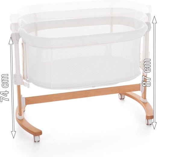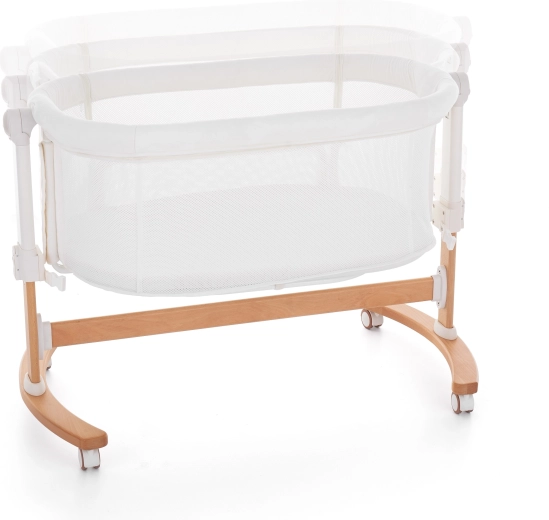 De geïntegreerde wiegfunctie helpt je baby sneller in slaap te vallen. De stabiele houten basis met wielen en remmen zorgt voor soepel schommelen en eenvoudig verplaatsen.