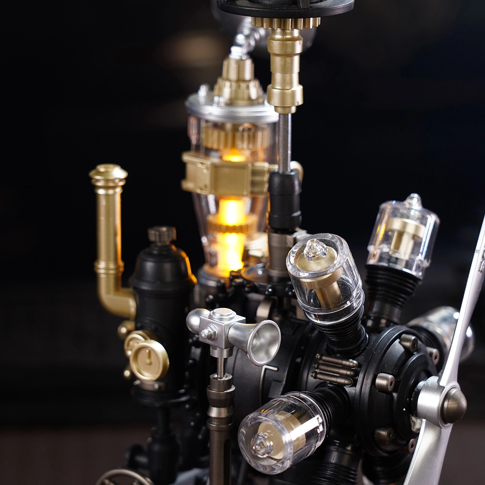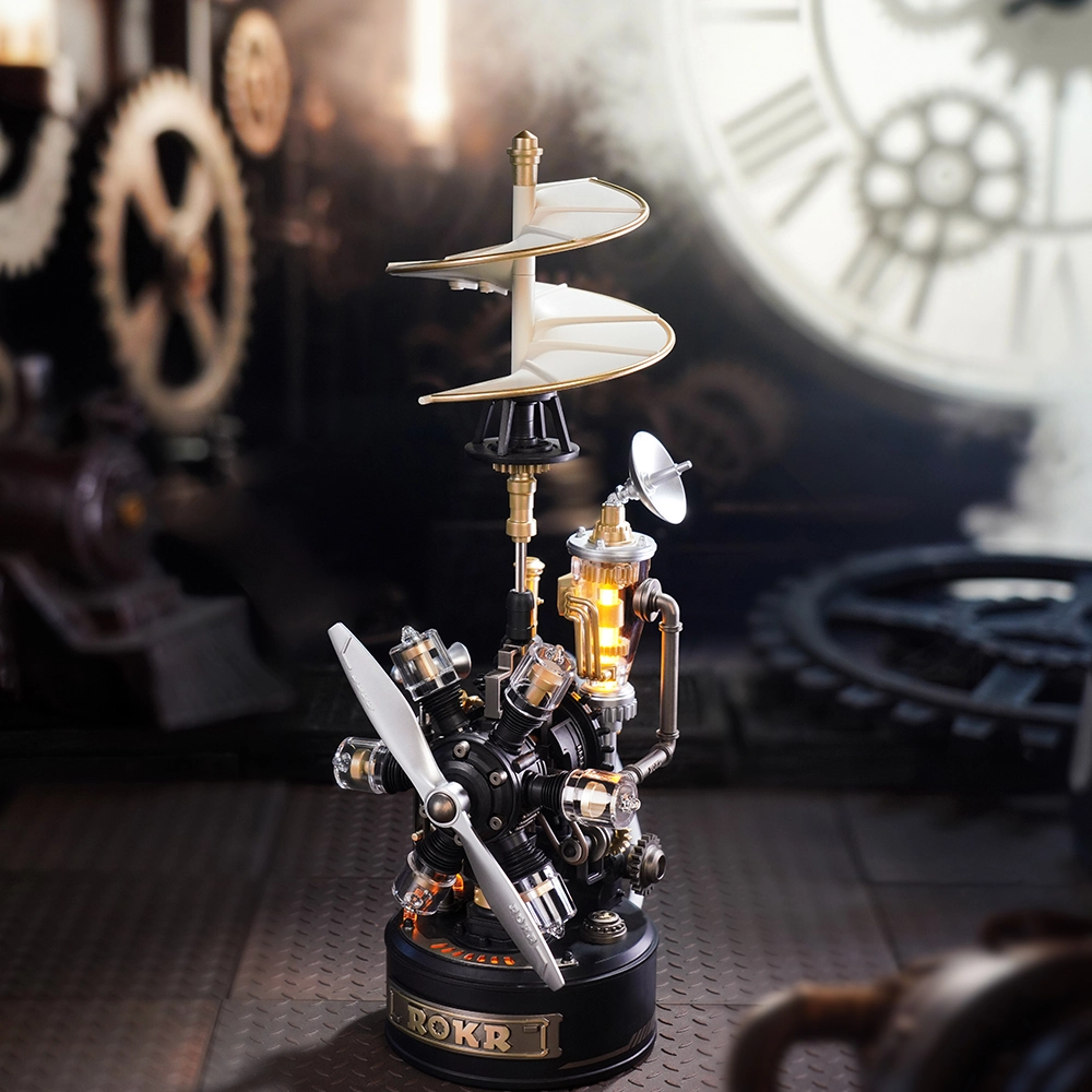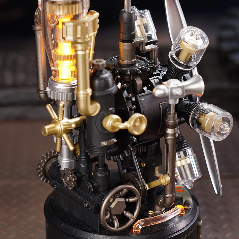 Geïntegreerde LED-lichtbron en stoomsimulatie versterken de steampunk-sfeer. Het model wordt een opvallende decoratie voor thuis en op kantoor.