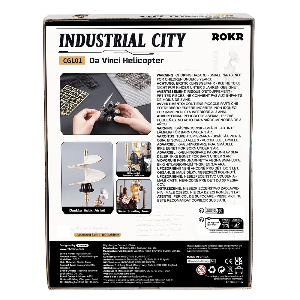 Deze 3D mechanische puzzel in steampunk-renaissancestijl biedt een unieke kijk op de vroege luchtvaartvisies. Na montage draaien de propellers en tandwielen, terwijl LED-verlichting en een “stoom”-effect het model een levendig, realistisch karakter geven. Dankzij de intuïtieve handleiding en genummerde onderdelen is de bouw leuk voor zowel vaardige beginners als ervaren modelbouwers.