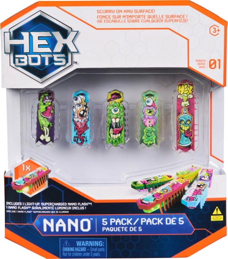 HEXBOTS Nano brengen moderne technologie in zakformaat naar de kinderkamer. Dankzij de vibratie-aandrijving trillen de kevertjes realistisch en zoeven ze over vlakke oppervlakken, kaatsen ze van obstakels af en kunnen ze zichzelf omdraaien wanneer ze op hun rug belanden. De speciale Flash Nano is groter, sneller en valt op door LED-verlichting, wat de actie in het spel nog verder verhoogt.