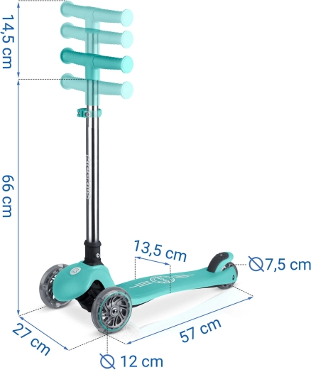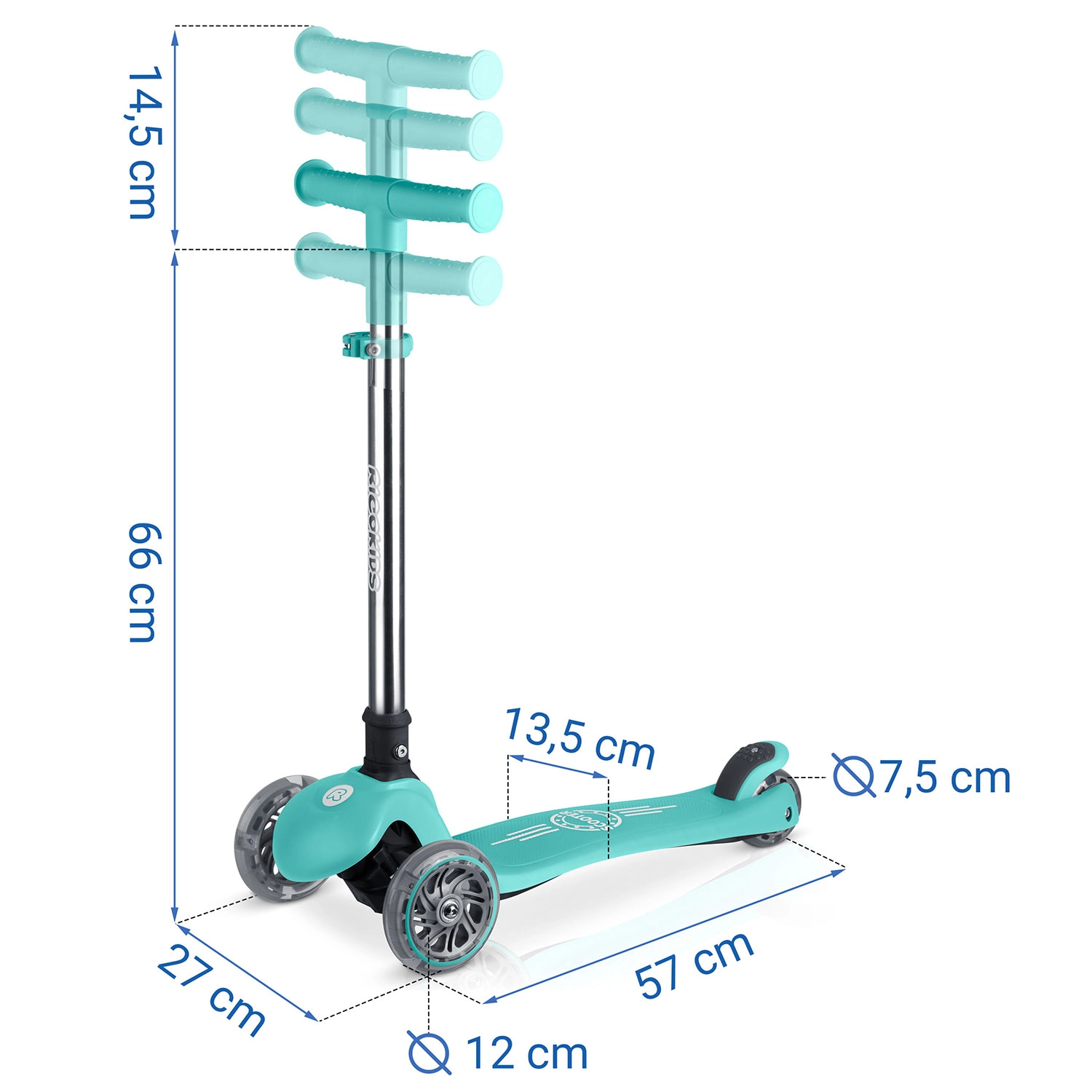 Twee voorwielen en een laag, breed deck helpen kinderen hun evenwicht te leren. Sturen gebeurt door een natuurlijke lichaamskanteling; de step blijft stabiel en goed bestuurbaar.