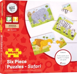 Ontdek de leuke 3-in-1 houten puzzels met Safari-dieren, ideaal voor kinderen vanaf 2 jaar. Drie afzonderlijke legpuzzels met grote, massieve stukjes passen perfect in kleine handjes en ontwikkelen de fijne motoriek, het logisch denken en de concentratie. Gemaakt van hoogwaardig en verantwoord verkregen hout voor veilig en zinvol spel.