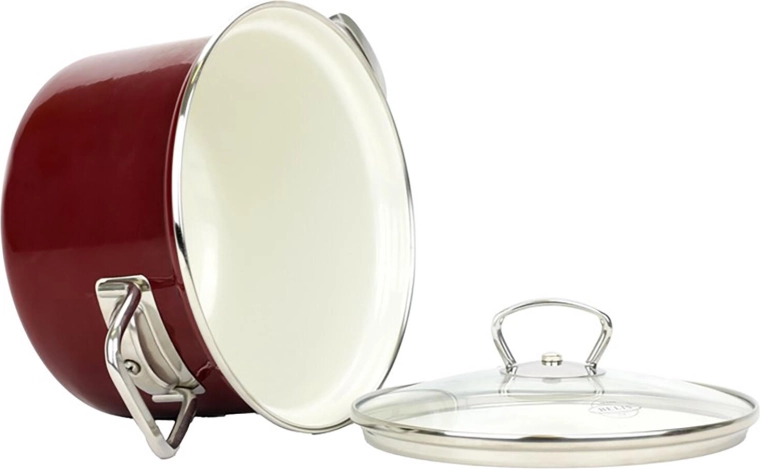 Combineert het beste van keramiek en emaille: extreem bestand tegen beschadiging, gelijkmatige warmteverdeling en een lange levensduur. Ideaal voor intensief gebruik in de keuken.