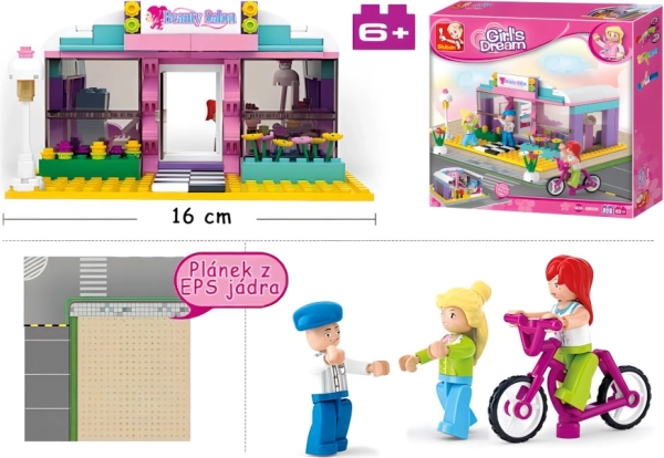 Deze kleurrijke bouwset brengt een moderne schoonheidssalon met etalages, spiegels en zitgedeelte, waar kinderen verhalen kunnen naspelen van visagisten en klanten. Dankzij 3 figuurtjes en rijke details ontstaan steeds nieuwe scènes – van kapsels stylen tot een ritje op de roze fiets.