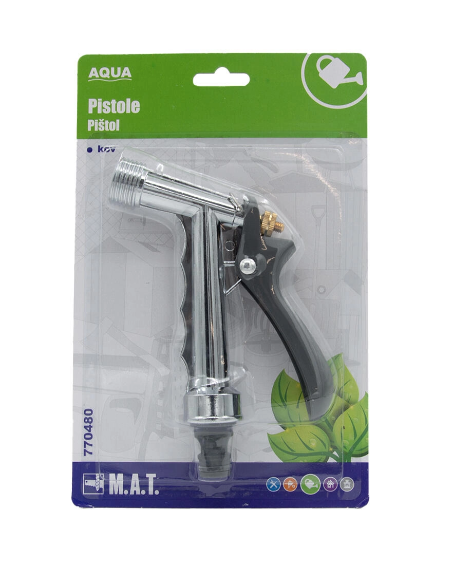 De universele metalen sproeier AQUA is een betrouwbare opzet voor tuinslangen voor comfortabel bewateren en reinigen. Dankzij de duurzame metalen behuizing biedt hij een lange levensduur en stabiele prestaties. U zult de eenvoudige bediening en de nauwkeurige sturing van de waterstraal waarderen voor het besproeien van bloembedden, het reinigen van terrassen en auto's en algemeen onderhoudswerk in de tuin.
