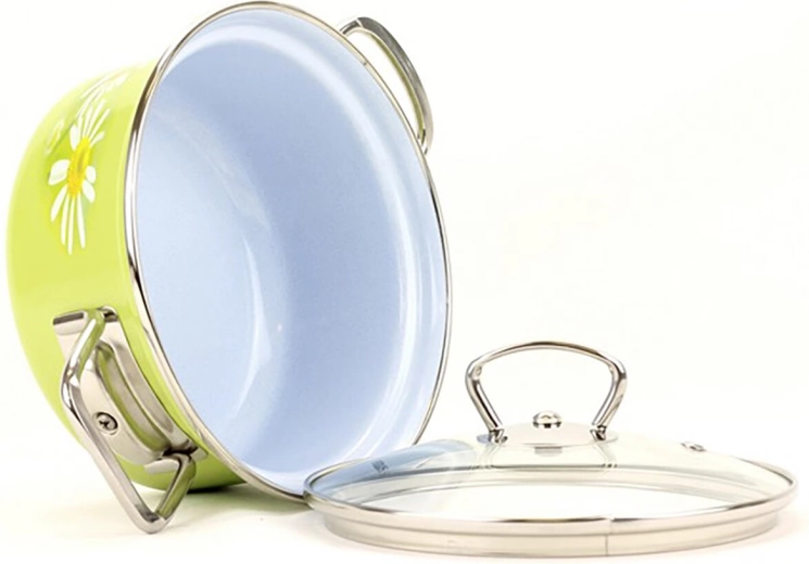 De BELIS Daisy pan onderscheidt zich door een combinatie van klassieke emaille en modern design met bloemendecor. De blauw-grijze graniet-emaille binnenlaag behoort tot de meest duurzame oppervlakken, is gemakkelijk te reinigen en zeer hygiënisch. Het glazen deksel maakt het comfortabel om de bereiding van gerechten te volgen zonder onnodig warmteverlies.