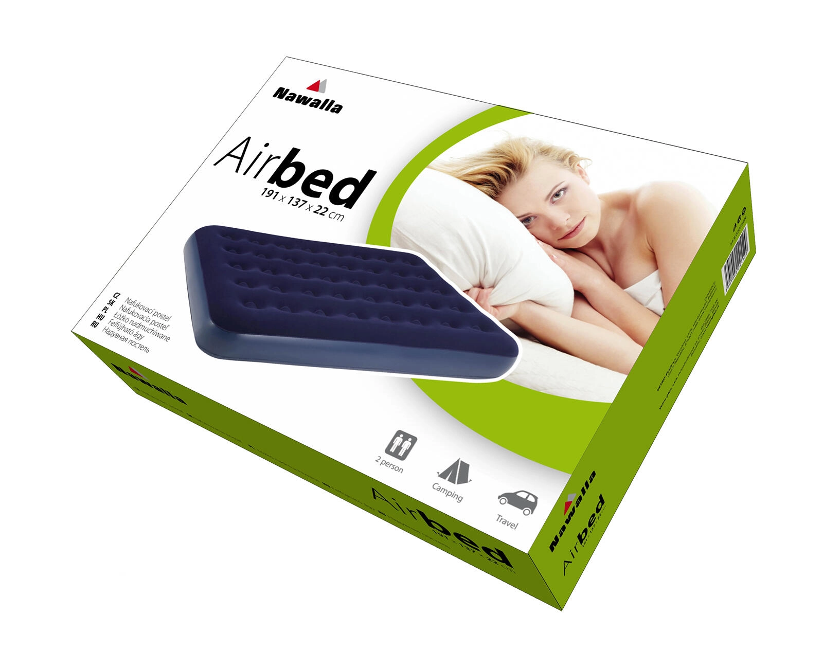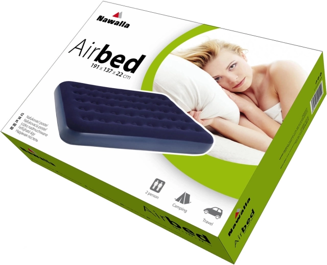 Dit blauw‑zwarte opblaasbare matras biedt comfort en flexibiliteit overal waar je snel en aangenaam wilt slapen. De afmetingen 191 × 137 × 22 cm bieden voldoende ruimte, terwijl het stevige vinyl van 0,3 mm dik dagelijks gebruik weerstaat. Een ideale keuze voor gasten, op de chalet en in de tent.