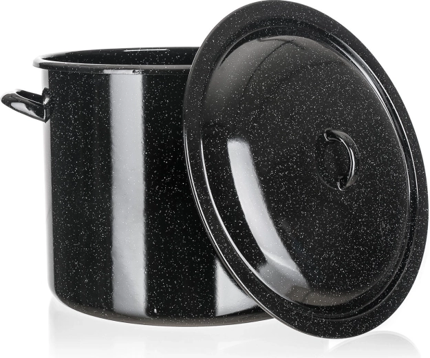 Het duurzame geëmailleerde oppervlak is hygiënisch, niet-poreus en gemakkelijk te reinigen. Brede zijhandgrepen zorgen voor veilige hantering. De pan is compatibel met alle gangbare kookplaten behalve inductie.