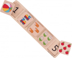 Het kind koppelt stukjes met afbeeldingen aan het juiste cijfer en maakt spelenderwijs kennis met eerste wiskundige begrippen, en ontwikkelt logica en concentratie.