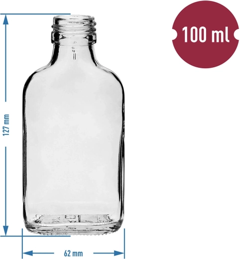 Deze glazen fles in de traditionele vorm van een heupfles verenigt functionaliteit en stijl. Het stevige, heldere glas laat je de inhoud controleren en oogt elegant bij het serveren. Dankzij de compacte afmetingen berg je hem gemakkelijk op in je zak, heuptasje of handtas.
