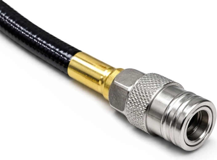 Metalen 1/4" snelkoppelingen maken razendsnelle aansluiting op gereedschap en compressor mogelijk. Versterkte geperste uiteinden voor een dichte en duurzame verbinding.