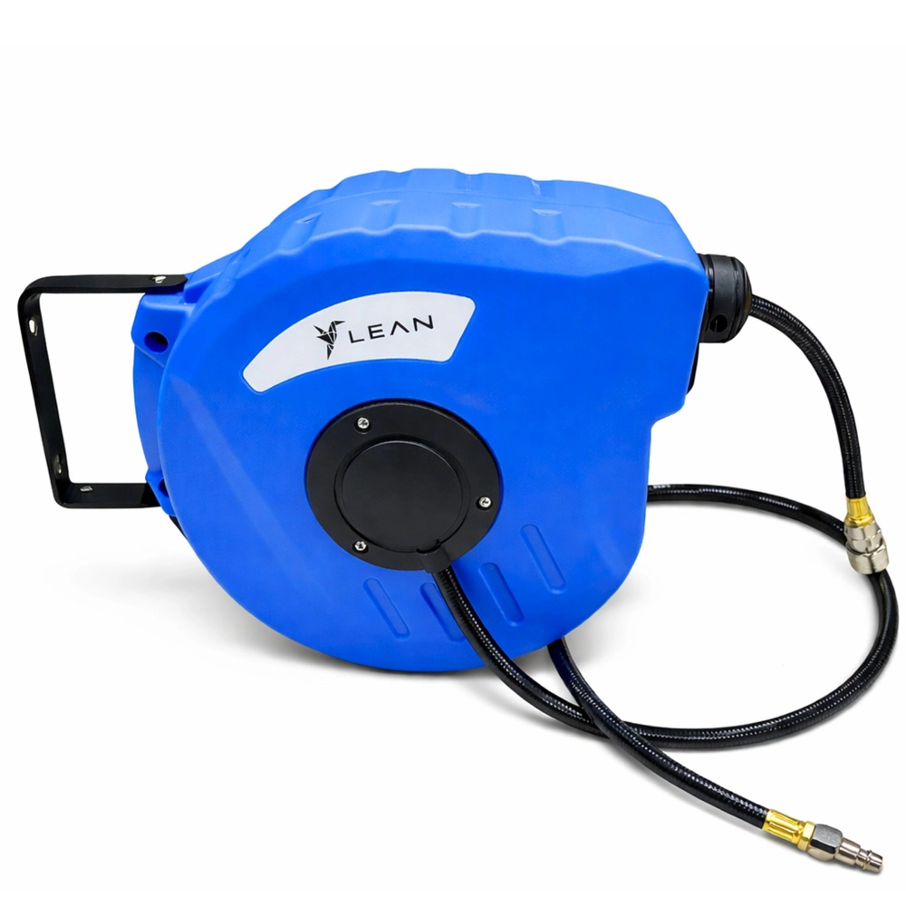 De automatische haspel voor persluchtslangen zorgt voor een nette en georganiseerde werkplek zonder verwarde slangen. De duurzame en flexibele PVC-slang met profiel 8 × 12 mm biedt een betrouwbare doorstroming van lucht en vloeistoffen bij een werkdruk van 8 bar en kan tot 24 bar aan bij overbelasting. Het geïntegreerde automatische mechanisme rolt de slang soepel af en na het werk veilig terug in de gesloten behuizing.