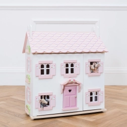 Betoverend houten poppenhuis LE TOY VAN Sophie uit de premium Daisylane-collectie met drie verdiepingen speelplezier, openslaande ramen en luiken met bloemenmotief en handgeschilderde pastelaccenten. Gemaakt van FSC-hout, afgewerkt met niet-giftige verf op waterbasis en geheel plasticvrij – een prachtig, duurzaam en stevig cadeau dat fantasierijk spel stimuleert.