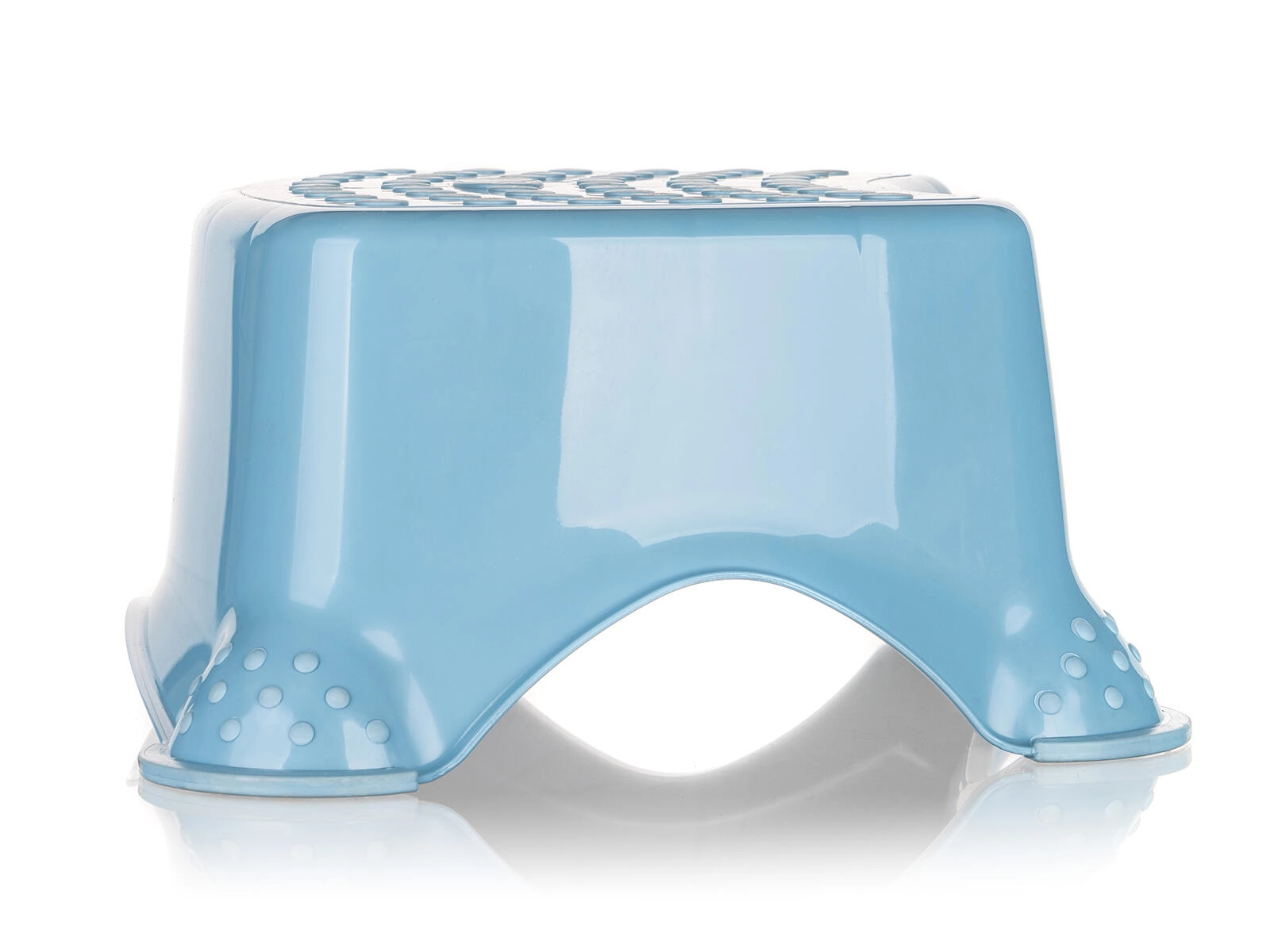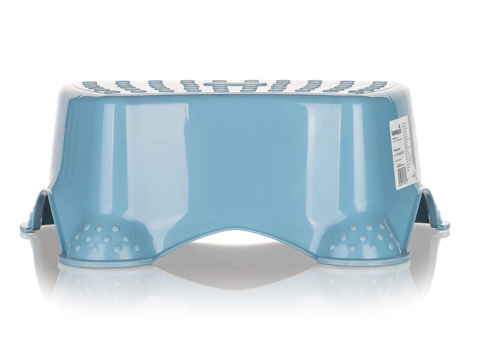 Deze praktische blauwe kruk is ideaal voor de badkamer, kinderkamer en keuken. Antislip nopjes op het bovenvlak en rubberen uiteinden aan de pootjes zorgen voor een zekere stap op verschillende vloertypen. Dankzij de compacte afmetingen van 40,5 × 28,5 × 14 cm past hij gemakkelijk onder de wastafel of in een hoek.