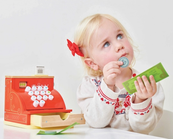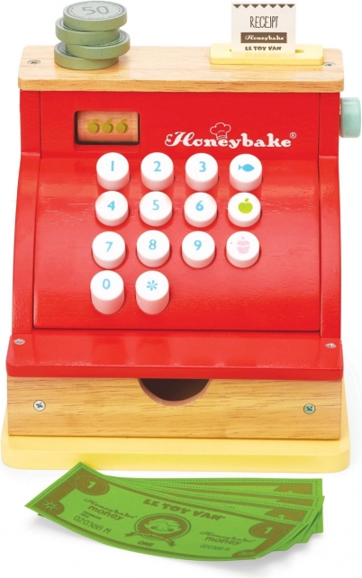 De rode houten kassa van LE TOY VAN uit de bekroonde Honeybake-collectie combineert hoogwaardige afwerking, veilige materialen en een charmante vintage look met gouden details. Ideaal voor winkeltje spelen en het ontwikkelen van sociale vaardigheden, creativiteit en basis rekenvaardigheden.