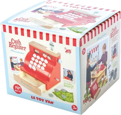 Kinderen kunnen echte aankopen nabootsen: op knoppen drukken, bonnen uitgeven, bankbiljetten en munten tellen en de kassalade openen. Het speelgoed is ontworpen voor langdurig gebruik – van duurzaam, ethisch verkregen hout met een afwerking op waterbasis.