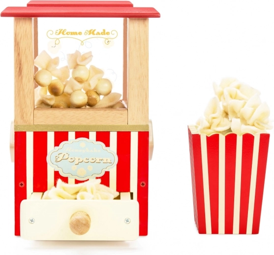 Stap in de wereld van bioscoopspel met deze gedetailleerde popcornmaker die elke kinderkamer laat stralen. De combinatie van hoogwaardig massief hout, een werkende hendel voor “poffen” en accessoires zoals vilten popcornstukjes, een lade en een gestreept bakje, trekt kinderen urenlang in het spel. Er zijn ook bioscooptickets en kaartjes voor zoete/zoute popcorn voor nog rijker rollenspel.