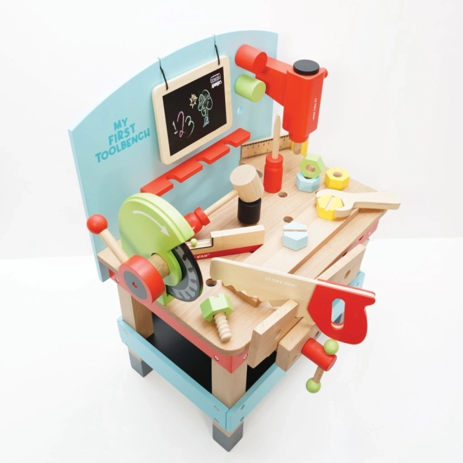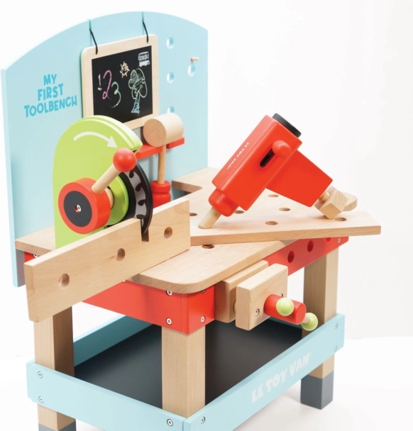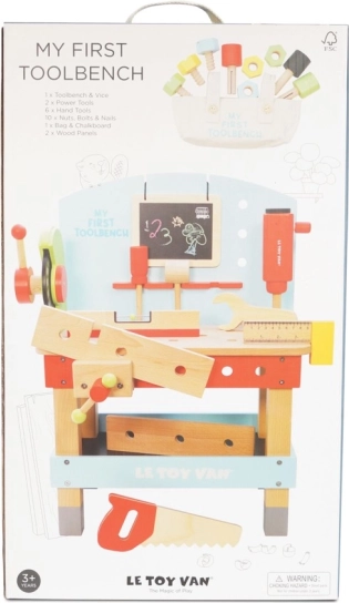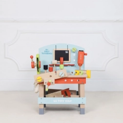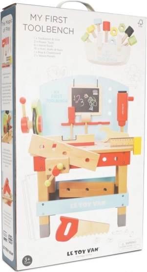 ‘Mijn eerste werkbank met gereedschap’ is ideaal voor kleine doe-het-zelvers die de wereld van gereedschappen en werkplaatsen willen ontdekken. Dit speelgoed is gemaakt van hoogwaardig FSC-hout, wat zowel duurzaamheid als milieuvriendelijkheid garandeert. Het bevat 20 onderdelen, waaronder een boor, cirkelzaag, klem, zaag, hamer, schroevendraaier en vele andere gereedschappen. Ook is er een krijtbord voor creatieve expressie.