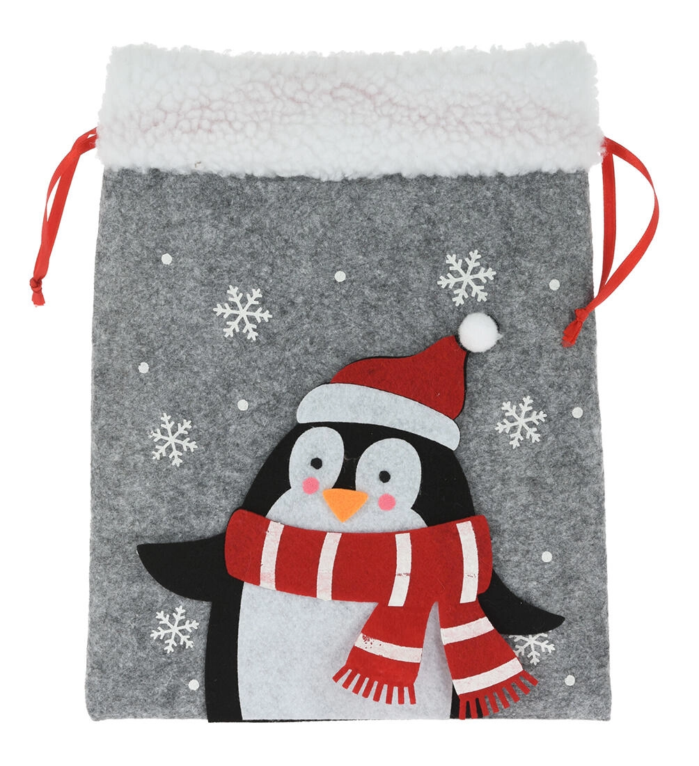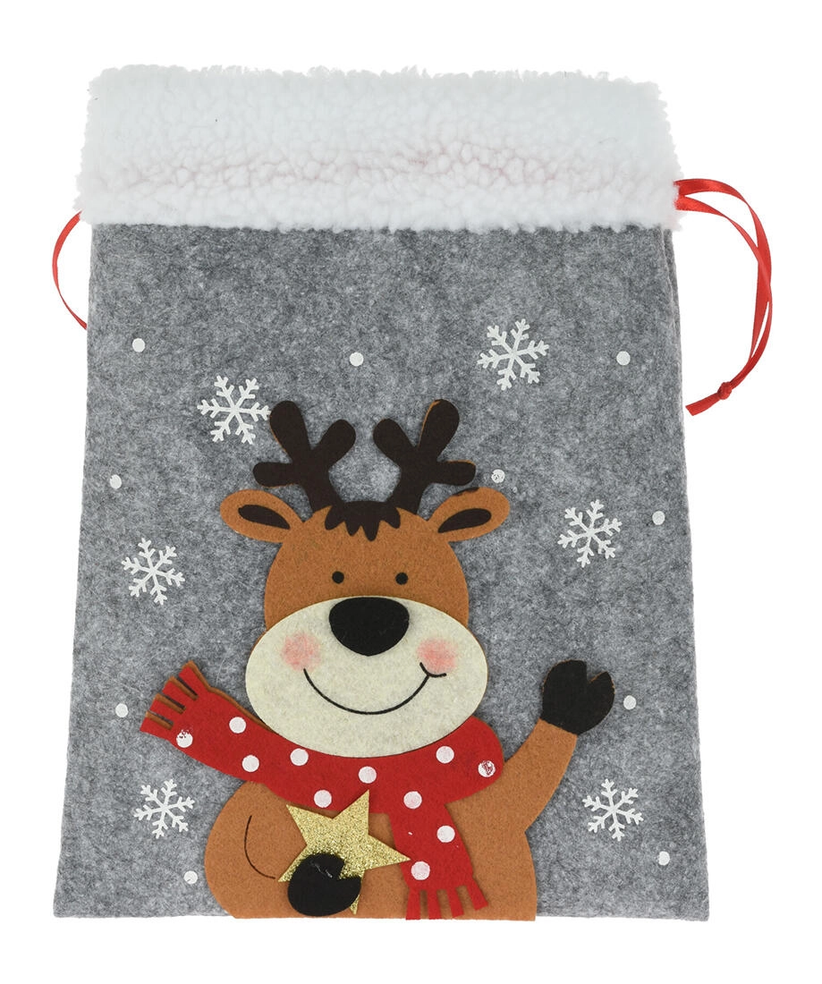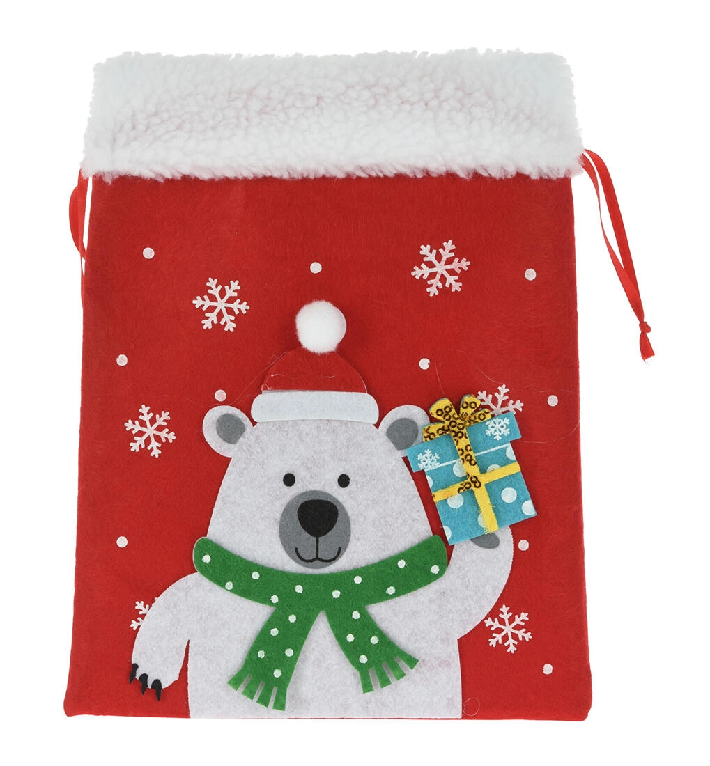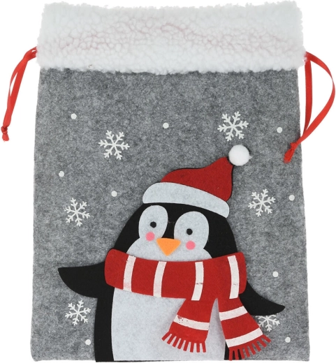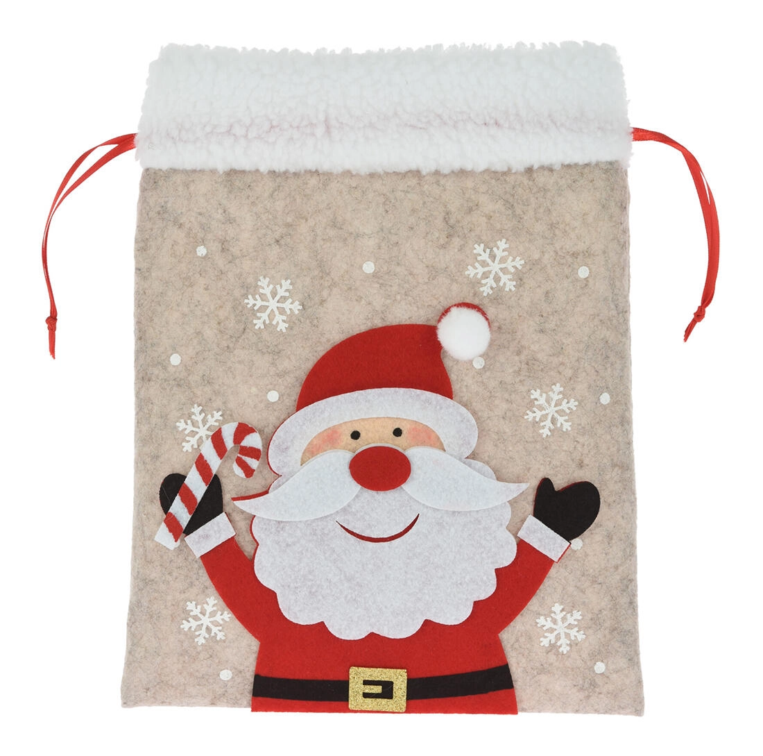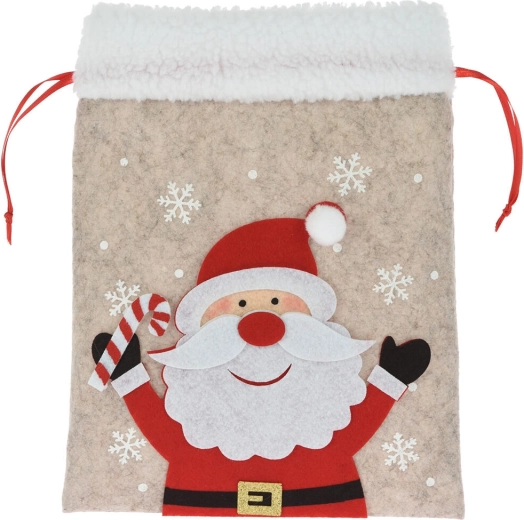 Maak van geven een feest met deze elegante kerstcadeauzak van vilt. Het zachte materiaal met subtiele haartjes voelt warm en decoratief aan, terwijl de feestelijke applicaties (SINTERKLAAS, rendier, ijsbeer e.a.) kinderen én volwassenen blij maken. De zak heeft een praktische zijdelingse trekkoordsluiting, waardoor hij makkelijk te vullen is en betrouwbaar gesloten blijft.