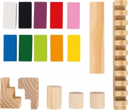 Deze houten dominobaan is een ideale keuze voor kinderen en volwassenen die houden van creatief bouwen en spectaculaire vallende sequenties. De bontgekleurde steentjes stimuleren experimenteren met vormen, afstanden en obstakels en leiden tot begrip van bewegingsprincipes en oorzaak-gevolg.