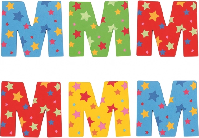 Kleurrijke houten letter Ster M helpt kinderen hun spellingsvaardigheden te ontwikkelen en letters te herkennen. Gemaakt van hoogwaardig hout, bevordert het behendigheid en concentratie.