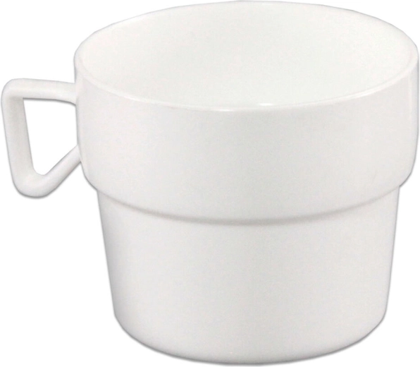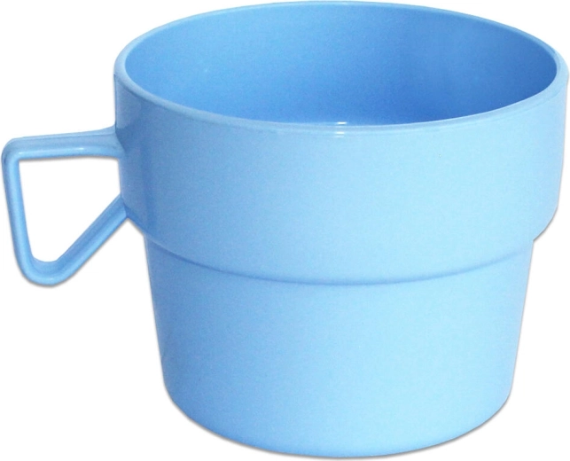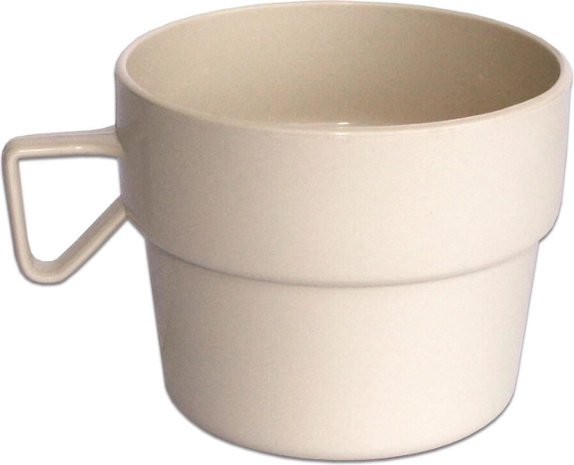 Geniet van eenvoud en functionaliteit met deze stapelbare plastic mok van 0,25 l. Hij is licht, duurzaam en gemakkelijk te onderhouden, waardoor het een uitstekende keuze is voor thuis, op kantoor, onderweg en tijdens het kamperen. Dankzij het comfortabele oor ligt hij ook goed in kinderhanden.