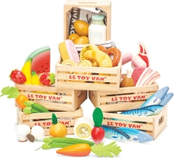 Deze houten krat met zuivelproducten van het merk Le Toy Van is ideaal voor kinderen die graag winkeltje of keukentje spelen. De set bevat een fles melk, boter, yoghurt, room en drie soorten kaas, elk artikel is ontworpen om er realistisch uit te zien. Deze speelgoedjes zijn niet alleen leuk, maar ook educatief, omdat ze kinderen helpen de belang van een uitgebalanceerd dieet te begrijpen.
